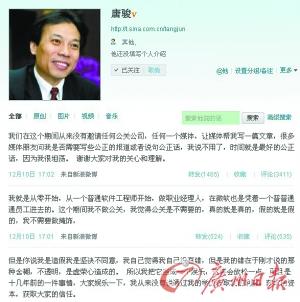 因为深陷“学历门”风波,唐骏的微博自7月6日开始便一直偃旗息鼓。但从12月10日下午5时开始,唐骏却打破沉默,连发8条微博,对学历造假事件进行公开回应,为自己辩解,态度依然强硬。