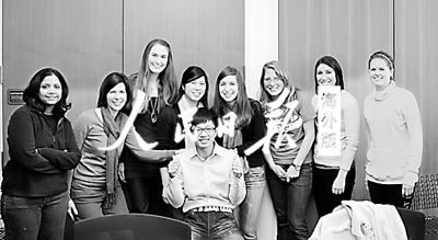 参加学术活动为申请各类奖学金增色不少。图为钟文泽(中间的男生)与研究组成员合影。