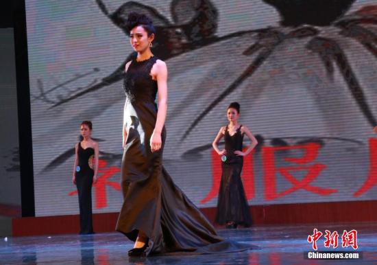 资料图:甘肃各地中职院校的30多名学生身着礼服走秀。 刘玉桃 摄