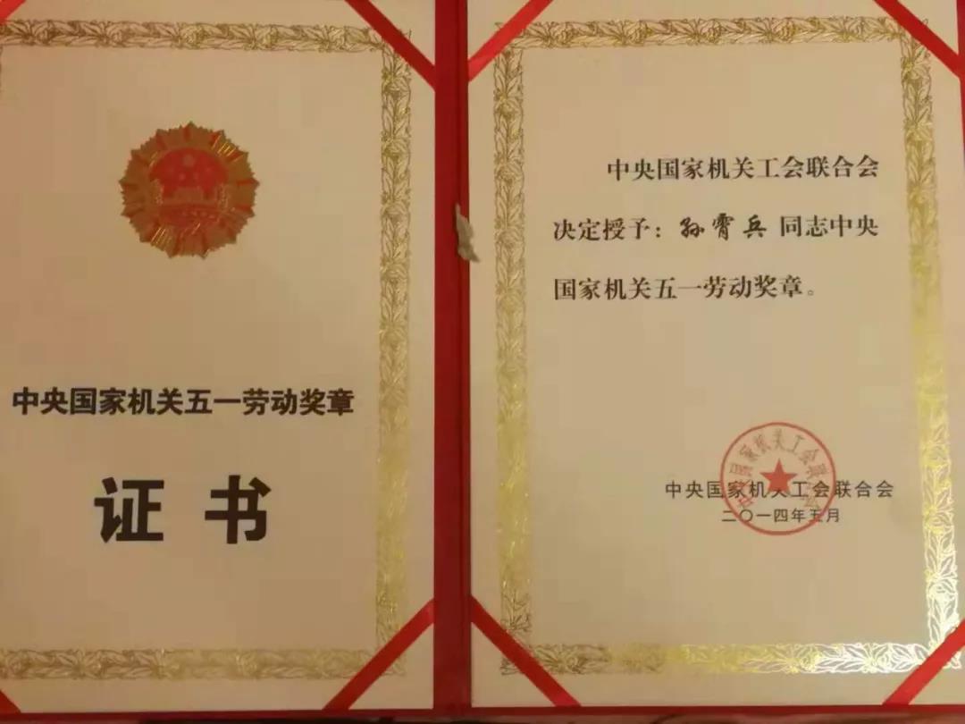 中央国家机关五一劳动奖章证书,孙霄兵教授供图