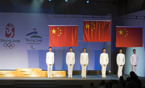 所有的奥运礼服和升旗手制服都绣有“Beijing 2008”的字样。