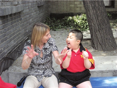 英国教师和培智学校的学生交流。英国大使馆文教处供图