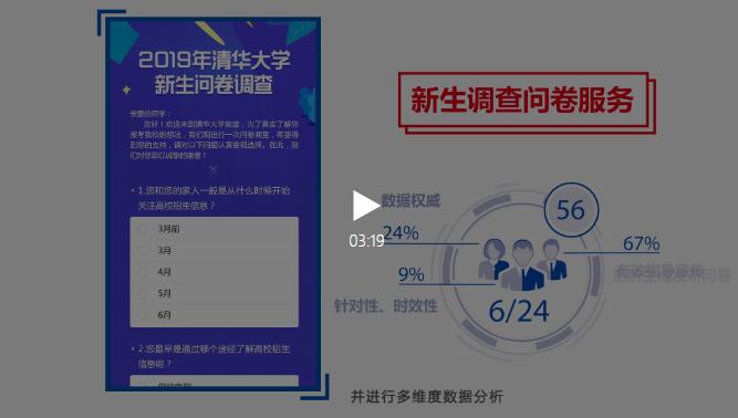 系统可生成、发布新生调查问卷,并进行多维度数据分析,为第二年的招生宣传工作提供有效指导!