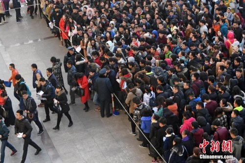 资料图:2016年11月27日,山西太原一公务员考点,考生排队准备进入考场。武俊杰 摄
