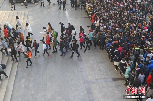 资料图:2016年11月27日,11月27日,福州一公务员招考笔试考点,考生在寻找考场。张斌 摄