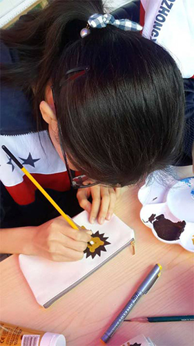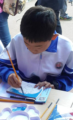 北京市第54中学的学生动手体验手包绘画