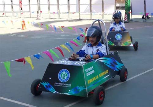 北京市第54中学的学生体验绿色能源电动车