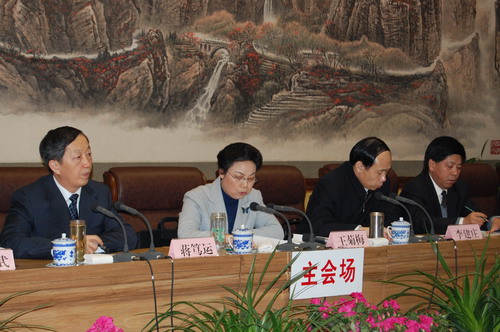 2007年河南省大中专毕业生就业工作电视电话会议召开,中者为河南省人民政府副省长王菊梅,右四为河南省人民政府副秘书长李建庄,左四为河南省教育厅厅长蒋笃运。