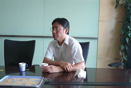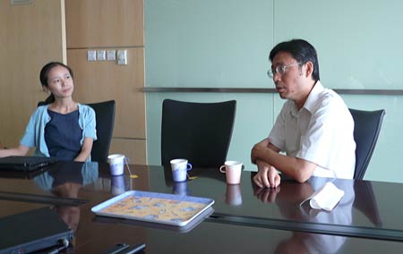 中国教育网总编陈志文向姜锋参赞介绍教育网网络拓扑图