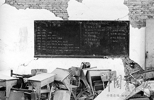 2008年5月,汉旺,倒塌的教室。 记者 晋永权 摄